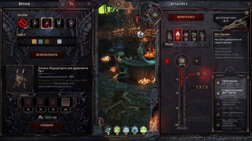 Решётка работает интересно и открывает простор для экспериментов с умениями. В любой момент мы можем просто убрать с решётки один навык и заменить другим, чтобы, например, наш драконет не плевался льдом во врагов, когда мы атакуем, а накладывал на нас ледяной щит. Учитывая ограниченность ячеек, это всегда непростой выбор.