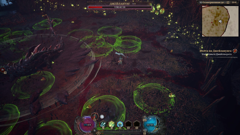 Ну и боссы вполне серьёзные. Это ещё не уровень Path of Exile II, но тоже очень неплохо — бои проходят на отдельных аренах, нам нужно запоминать паттерны, лавировать среди гадости, которую они плюют нам под ноги, уклоняться с помощью рывка и умирать. Сначала я играл на сложном уровне, потом, когда вечер совсем перестал быть томным, перешёл на нормальный, но всё равно за пару часов первого акта умирал чаще, чем, например, за всю сюжетную кампанию Diablo Immortal или Torchlight: Infinite. Игра недотягивает до хардкора Path of Exile II, но именно в сюжете ощущается посложнее, чем Diablo IV.