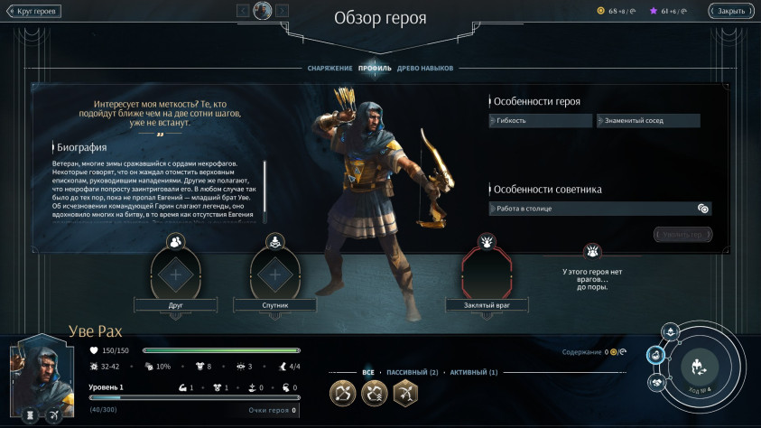 Нужно вручную прокачивать героев и примерять на них снаряжение. У них могут быть личные поместья, друзья, спутники и злейшие враги.