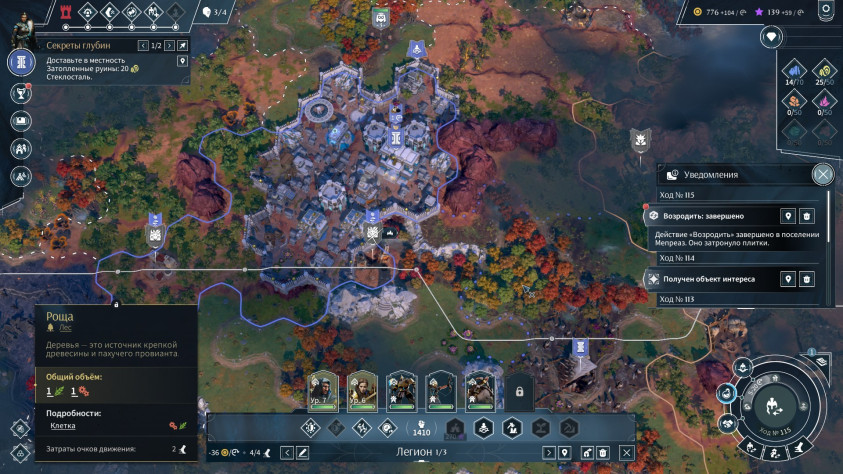 Так или иначе, на карте полно точек интереса, источников редких ресурсов, охраняемых крепостей, куда могут попасть только армии с героями, а также нейтралов. Правда, это не совсем нейтралы: они называются малыми народами — такие поселения будут постоянно создавать проблемы и плодить в округе войска, пока мы их не ассимилируем и не подчиним. Это можно сделать тремя способами — выполнить их просьбу, подкупить или победить в бою. Ассимилированные фракции дают бонусы, а потом ещё за очки влияния их можно сделать своими подданными.