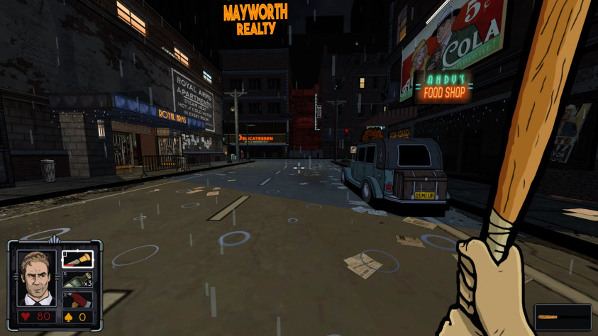 После этого начинается довольно мрачная, интригующая история, разбитая в рамках первого эпизода на пять глав. Мы бегаем по пылающим улицам города, посещаем порт, загородное поместье и ночной клуб. Майк сражается или играет в прятки с гангстерами, встречает не самого приятного человека из своего прошлого, спасает из плена симпатичную девушку, ищет улики на месте преступления и даже улепётывает от акул. А ещё пытается помочь своему спасителю разобраться, что же происходит. Тот всё время на связи и периодически приходит на помощь.