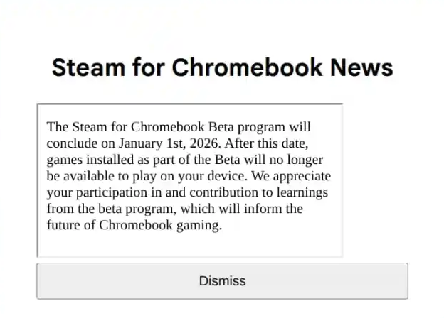 Steam для Chromebook, запущенный в «бете» в 2022 году, перестанет работать 1 января 2026-го. После этой даты установленные в рамках программы игры больше нельзя будет запустить на устройстве.