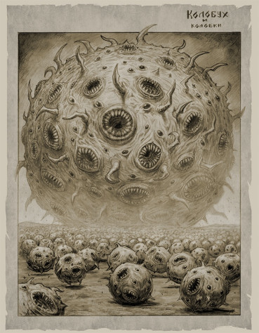 SG: Твои персонажи основаны на сказках, былинах и быличках. Как ты нащупываешь грань между собственной авторской выдумкой и источниками? Например, почему Колобок в «ССР» стал пожирателем миров под именем Колобух?