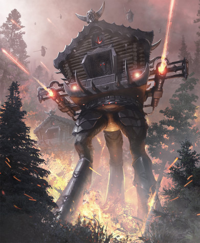 РП: Я за точность формулировок — не стимпанк, а манапанк. Источник энергии там — это волшебные камни, то есть механизмы работают на магии. Экзоскелеты действительно есть, ещё есть различные протезы механические, которые на волколаков надеваются. Вообще, за технологии отвечает Змей Горыныч. Он у нас во вселенной капиталист и промышленник. У него есть мастерские, в которых работают лучшие мастера со всего Белосветья. Конкуренты Горыныча — яги, у которых совсем высокотехнологичное оснащение. Этому противостоянию отдельная сюжетная линия будет посвящена.