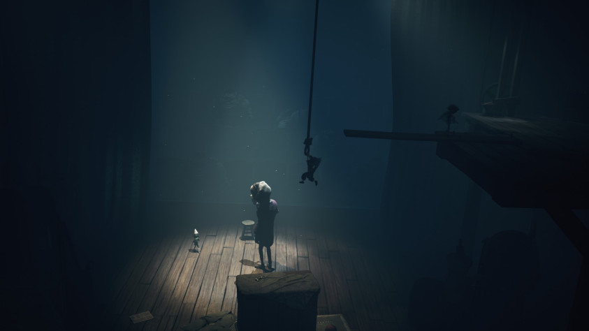 Некоторые сцены опять же цитируют эпизоды из прошлых игр — например, нас запирают на арене и заставляют бить нападающих тяжёлым предметом. Но тут надо уточнить, что, в отличие от второй части, теперь в этом участвуют оба персонажа — Малой стреляет из лука, а Одна добивает гаечным ключом, уничтожая головы. А всё потому, что в Little Nightmares впервые появился кооператив. И у каждого тут своя роль. Малой стреляет из лука не только по врагам, но иногда и по важным кнопкам или верёвкам, чтобы убрать препятствие или помочь с решением загадки. А Одна с помощью гаечного ключа может и проход в стене пробить.