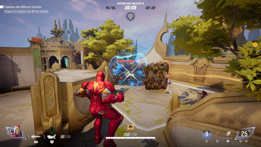 Даже среди здешних персонажей можно найти знакомые типажи. Грут создаёт стены, точно как Мэй. Железный человек летает над землёй и выпускает ракеты — очень похоже на Фарру. А Мантис либо исцеляет союзников, либо дарует им временное усиление урона — явно училась этому у Ангелы.