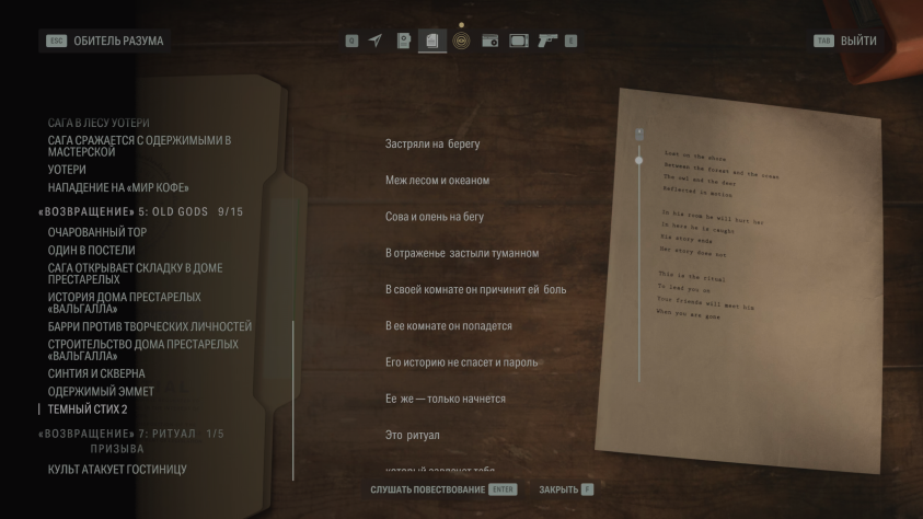 Alan Wake II неоднократно рассказывает о важности ритуалов, к которым относятся и детские стишки-загадки.
