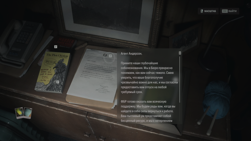 До финала оригинальной Alan Wake II и сцены после титров, где Элис признаётся, что добровольно вернулась в Тёмную обитель, чтобы помочь мужу, мы никогда не задумывались о том, как другие виды творчества взаимодействуют с Тёмной обителью. Но теперь мы знаем, что фотографии, сделанные Элис, могут воплощать в реальность предметы или целые события — её предсмертный фильм не столько прощание с миром и Аланом, сколько попытка оказаться в Тёмной обители с помощью силы своего творчества. И украденный Скретчем Щелкунчик — это не рояль в кустах, а одна из фотографий, которые Элис успела сделать, пока в жизнь претворялся один из черновиков «Возвращения».