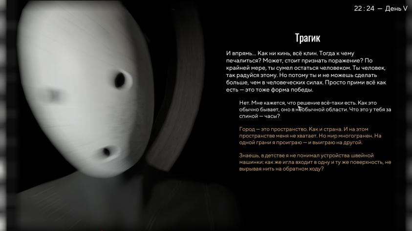 О чём это было? Понятно, что о выживании, жизни и смерти. Но не только. Я давно сформулировал это в давнем обзоре на «Тургора» — как и «Мор. Утопия», это игра об ответственности за свои решения, о том, что только от нас зависит, какой будет наша жизнь. Впрочем, после Pathologic 3: Quarantine я бы добавил к этому ещё одно слово — «смерть». Но об этом чуть позже.