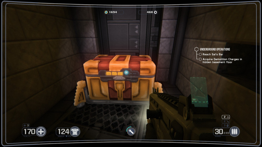 Лутбоксы! Поскольку вне хардкорного режима валюта практически бесполезна, гейм-дизайнеры раскидали по локациям пяток таких вот сундучков со случайно генерируемыми припасами.