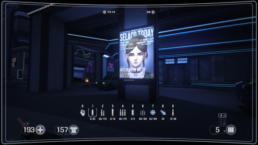 В Selaco очень мало запоминающихся секретов. Из 150 штук можно выкинуть где-то треть и ничего не потерять.Тяга добавлять ненужные детали отразилась в том числе на снайперской винтовке, которая безотказно косит часовых, а обычных противников и выстрелом голову не берёт. Пушка и так на редкость бесполезная для FPS с недостатком открытых пространств и динамикой F.E.A.R., но авторы пошли дальше и зачем-то приделали ей механику сошек, которые активируются, если встать на месте около укрытия по пояс. В чём логика, как они дополняют гейм-дизайн и боевую песочницу?