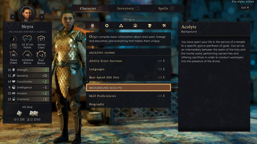 У каждого есть как общие, так и расовые показатели и различия: так, дворф обладает повышенной сопротивляемостью ядам, эльф — магии, полурослик из-за небольшого роста может пролезать там, где другие не могут. И только у человека нет каких-то особых отличий, зато есть свой бэкграунд (в данном случае — аколита) и биография.