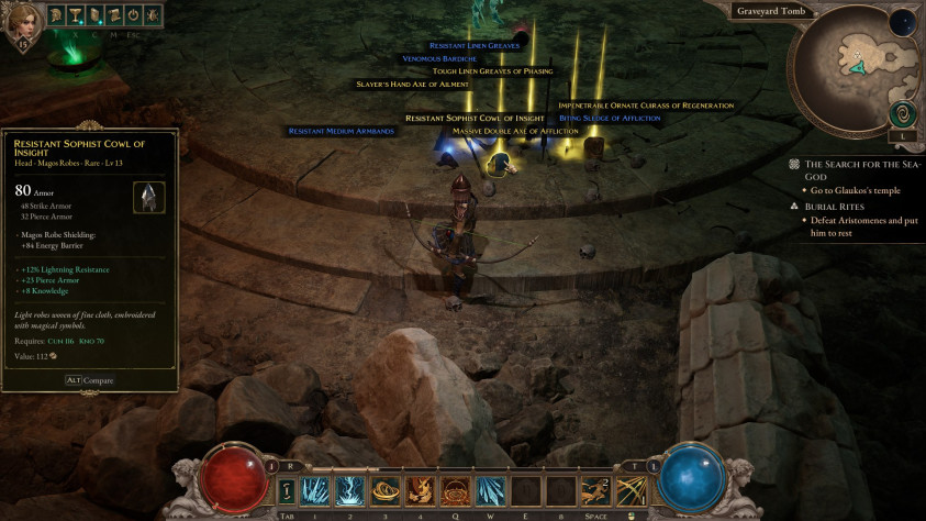 Например, можно сделать так, чтобы молния била не сразу в то или иное место, а с определённой задержкой, но наносила больше урона — это существенно влияет на тактику. Вариантов модификаций множество — тут большой простор для экспериментов, причём по сравнению с Path of Exile II, откуда и приехала эта механика, в Titan Quest II подобные эксперименты, скажем так, более доступны. Особенно важным мне показалось грамотно модифицировать общие для всех классов умения — рывок, обычную атаку, временный щит. Тут даже специально предусмотрено два варианта настройки основной атаки.