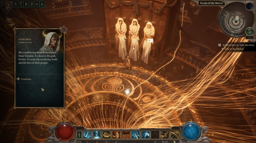 Естественно, встреча прошла в нервной обстановке — мы вынужденно покинули родные пенаты и отправились искать поддержки у других богов и их приближённых. Так, богини судьбы, сёстры Мойры, рассказали, что Немезида хочет вернуть в дело Кроноса, легенду номер один среди титанов. А мы должны ей помешать. На этом сюжет, доступный в раннем доступе, заканчивается, но дальнейшее нетрудно представить.