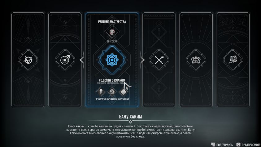 Переход к более примитивным побочным квестам и менее увлекательному исследованию, видимо, связан с тем, что перед нами не совсем RPG в духе оригинальной Bloodlines, а сюжетное приключение в открытом мире «с элементами». По сравнению с первой частью ролевой системы практически нет. Генерация персонажа сводится к выбору одного из шести кланов, системы атрибутов, талантов, навыков, знаний и дисциплин нет. Нам лишь говорят, к чему склонна та или иная фракция, но на деле все умения, которые мы открываем, связаны со сражениями, перемещением и стелсом — в сиквеле нет возможности соблазнять, убеждать, запугивать, взламывать замки или компьютеры, получать скидки у торговцев… Да и торговли нет.