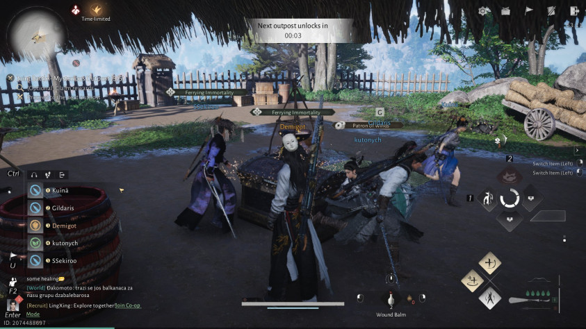 А ещё перед сложными драками можно позвать на помощь NPC-союзника (если вы уже успели открыть его) или другого игрока. И тут я должен напомнить, что Where Winds Meet — это MMO. Авторы пошли по пути, проложенному ещё Star Wars: The Old Republic, которая чуть ли не первой стала чётко разделять контент для одиночного и мультиплеерного прохождения.